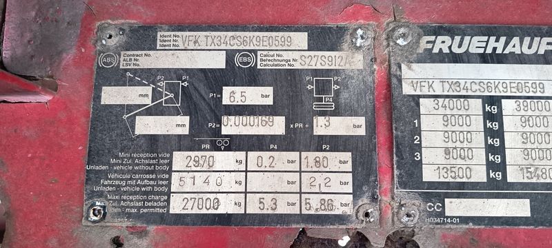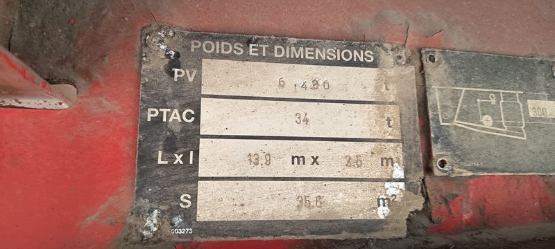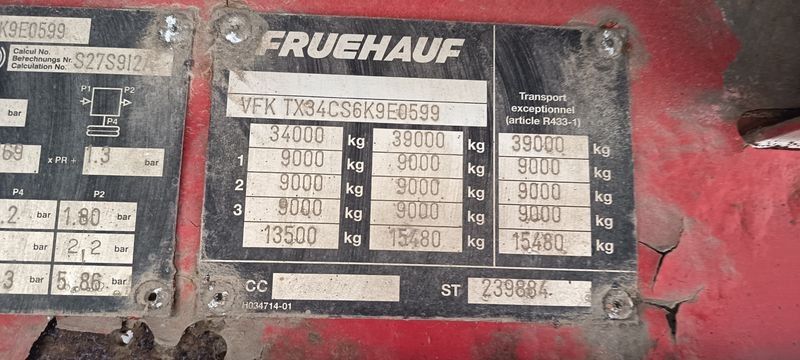 SREM FRUEHAUF SEMI REMORQUE BACHEE 3 ESSIEUX PTAC : 34 TONNES - ANNEE 2017 - Dmec : 02/01/2007-TVA récupérable-Observations : FICHE D'IDENTIFICATION PAS D'EXPORTATION -Equipements : FICHE D'IDENTIFICATION PAS D'EXPORTATION/FEUX DE SIGNALISATION NON TESTE/PLANCHER PLAT - PAS DE FOSSE/PV : 6,42 TONNES/PTAC : 34 TONNES/PREVOIR UNE CHAINE POUR L'ESSIEU SANS ROUE/2 ROUES A REVOIR DANS LA REMORQUE/