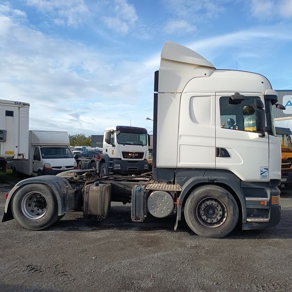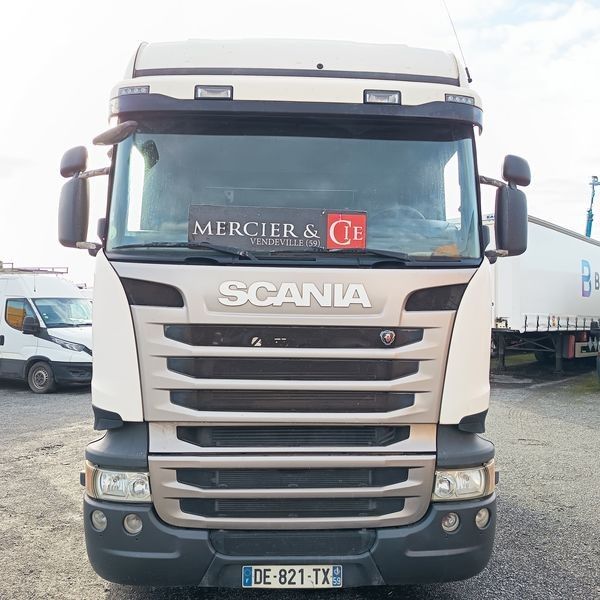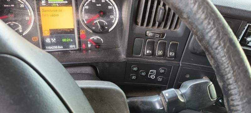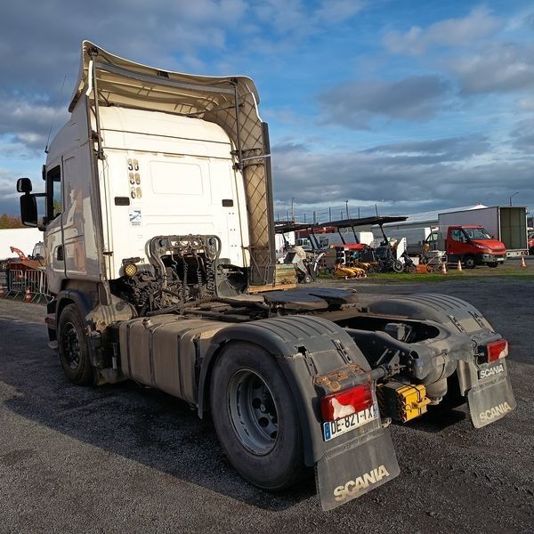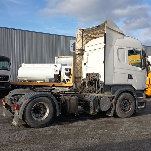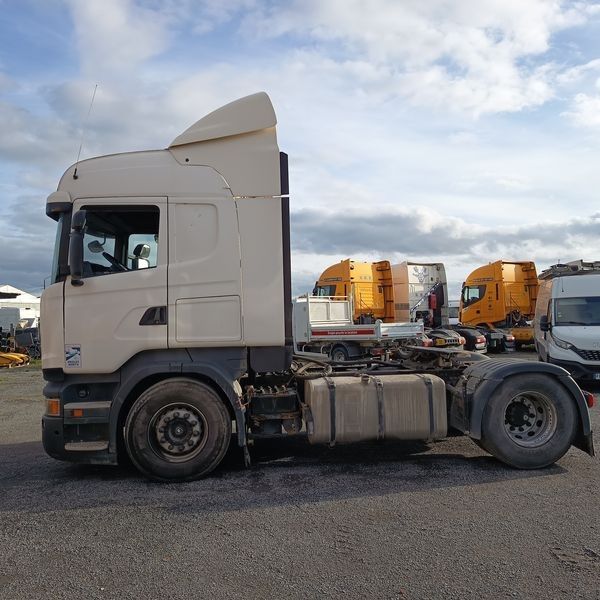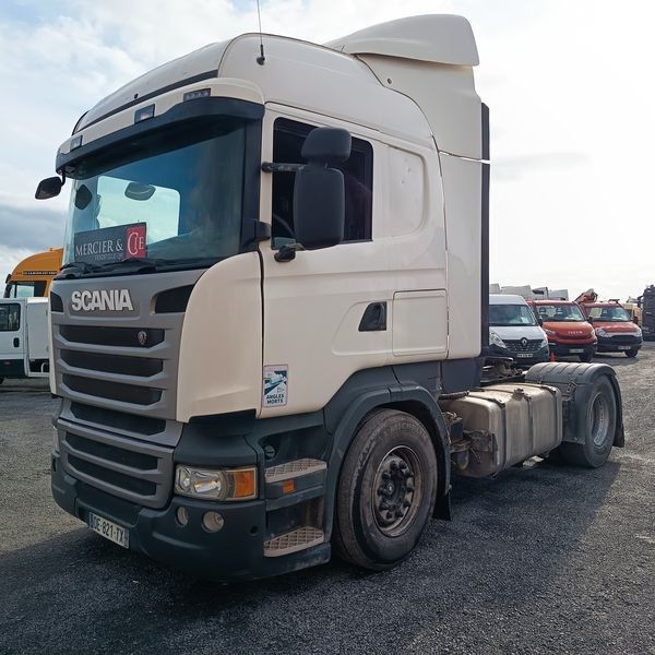 TRR SCANIA R440 DIESEL - PTRA : 44 TONNES - 1164208 KMS - ANNEE 2014 - Dmec : 09/04/2014-1164208Kms-Energie : GO-Couleur : BLANC-TVA récupérable-Observations : FICHE D'IDENTIFICATION PAS D'EXPORTATION -Equipements : 2 PLACES/ABS/BLOCAGE DE PONT/BOITE AUTO/CLIMATISATION AUTO/DIRECTION ASSISTEE/FERMETURE CENTRALISEE/FRIGO DE CABINE/REGUL ET LIMITEUR/RALENTISSEUR BOITE/RADIO CD/TACHYMETRE A CARTE/VITRES ELECTRIQUES/FICHE D'IDENTIFICATION PAS D'EXPORTATION/GARNITURE DE FREINS USEES ECRIT AU TABLEAU BORD/3 VOYANTS ORANGE ALLUMES/