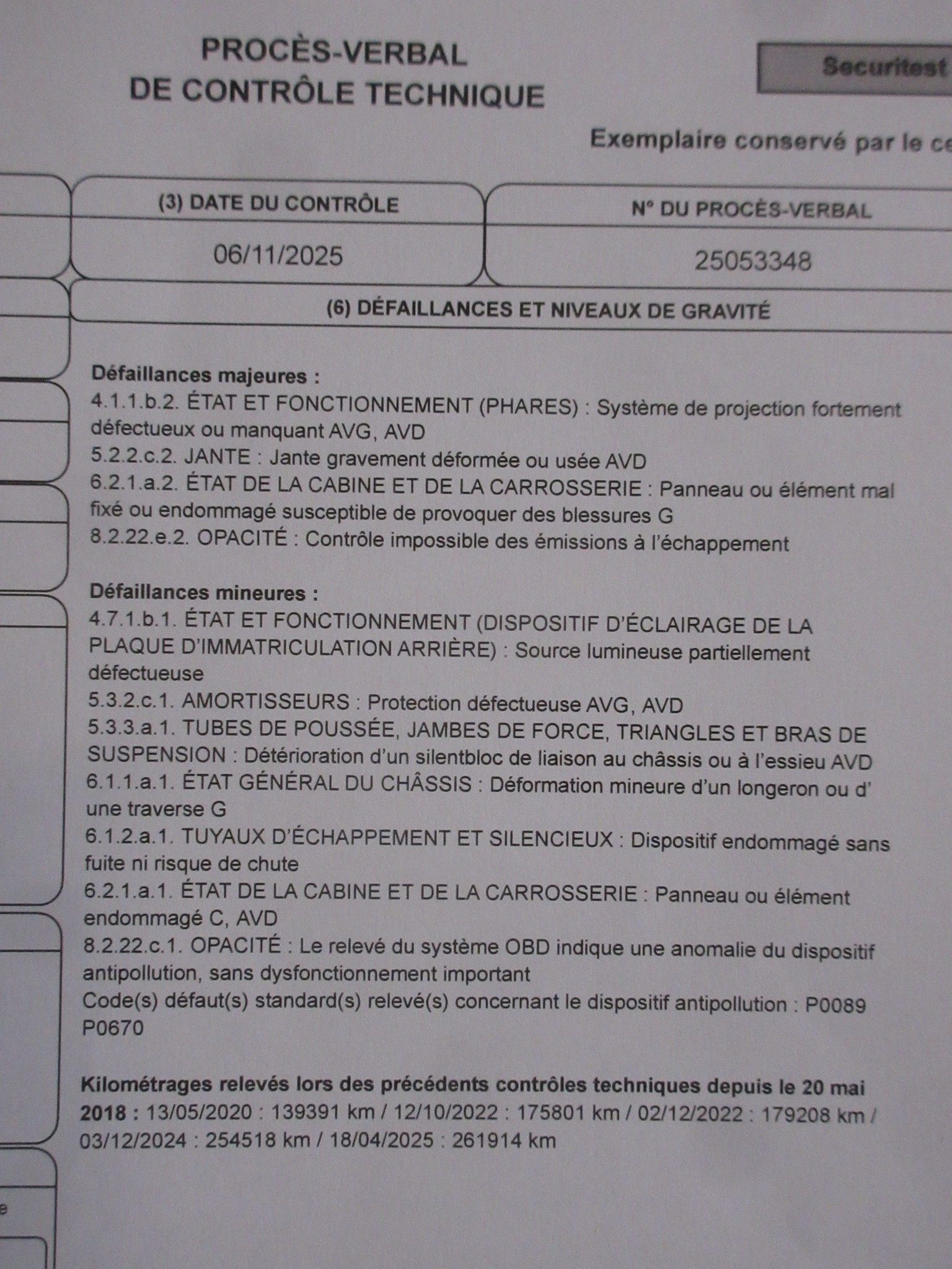 Contrôle technique du 06/112025 :
