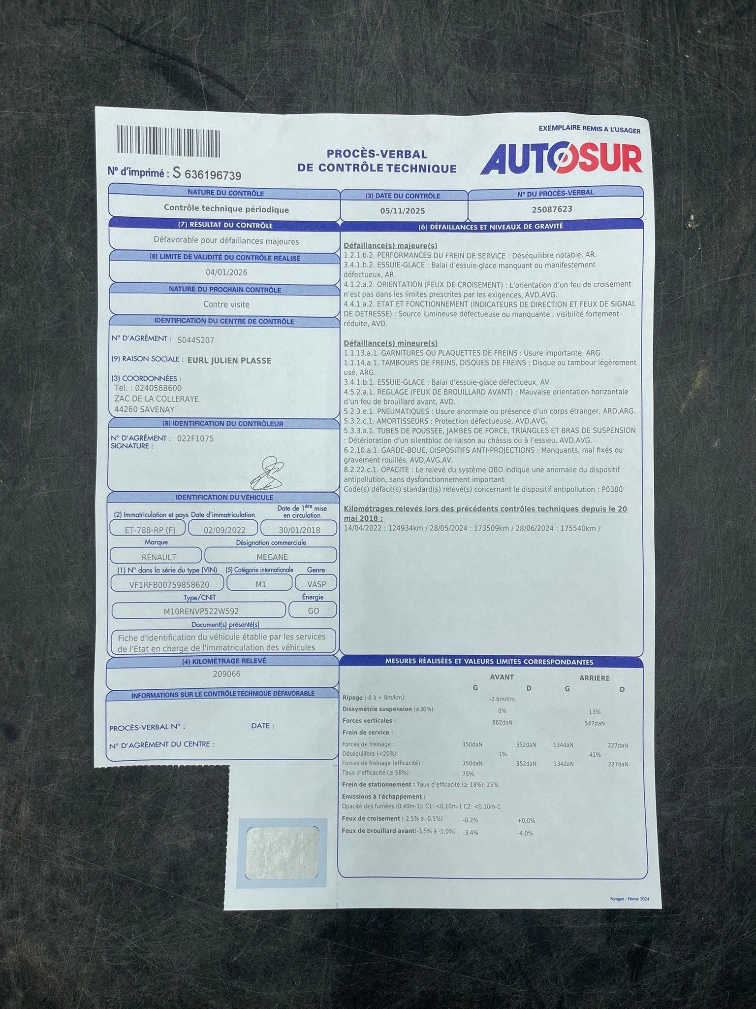 RENAULT MEGANE société Immatriculation : ET-788-RP