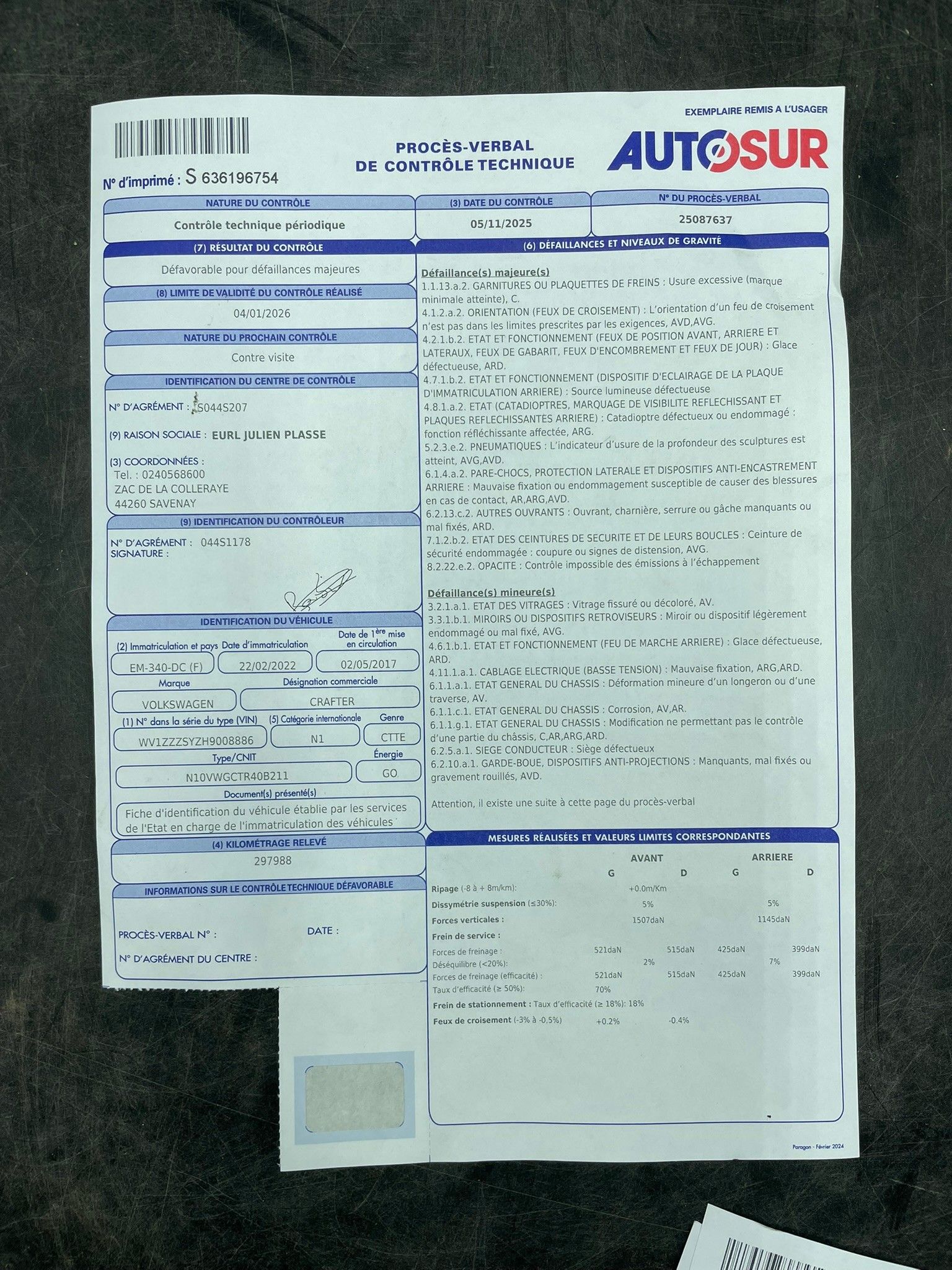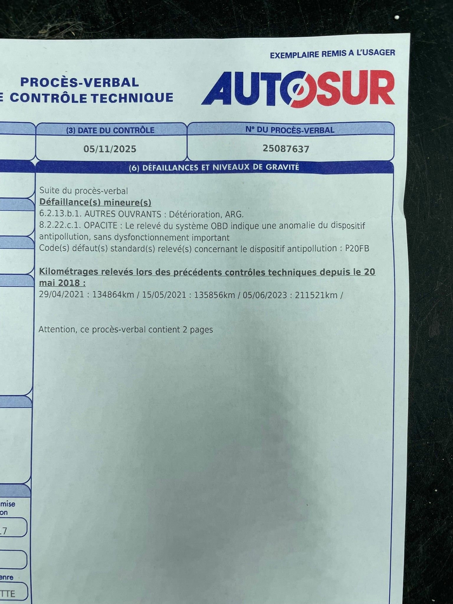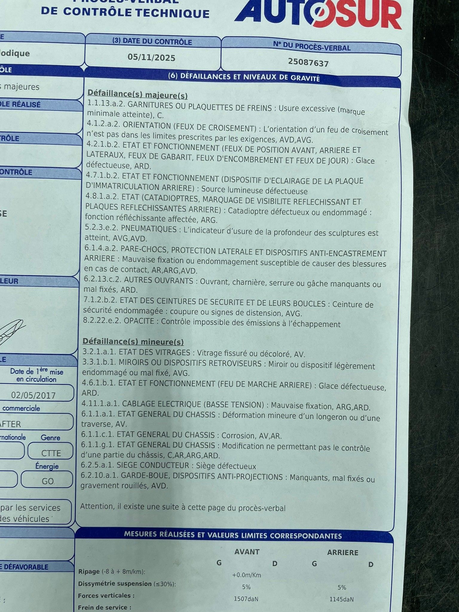 Contrôle technique : Oui