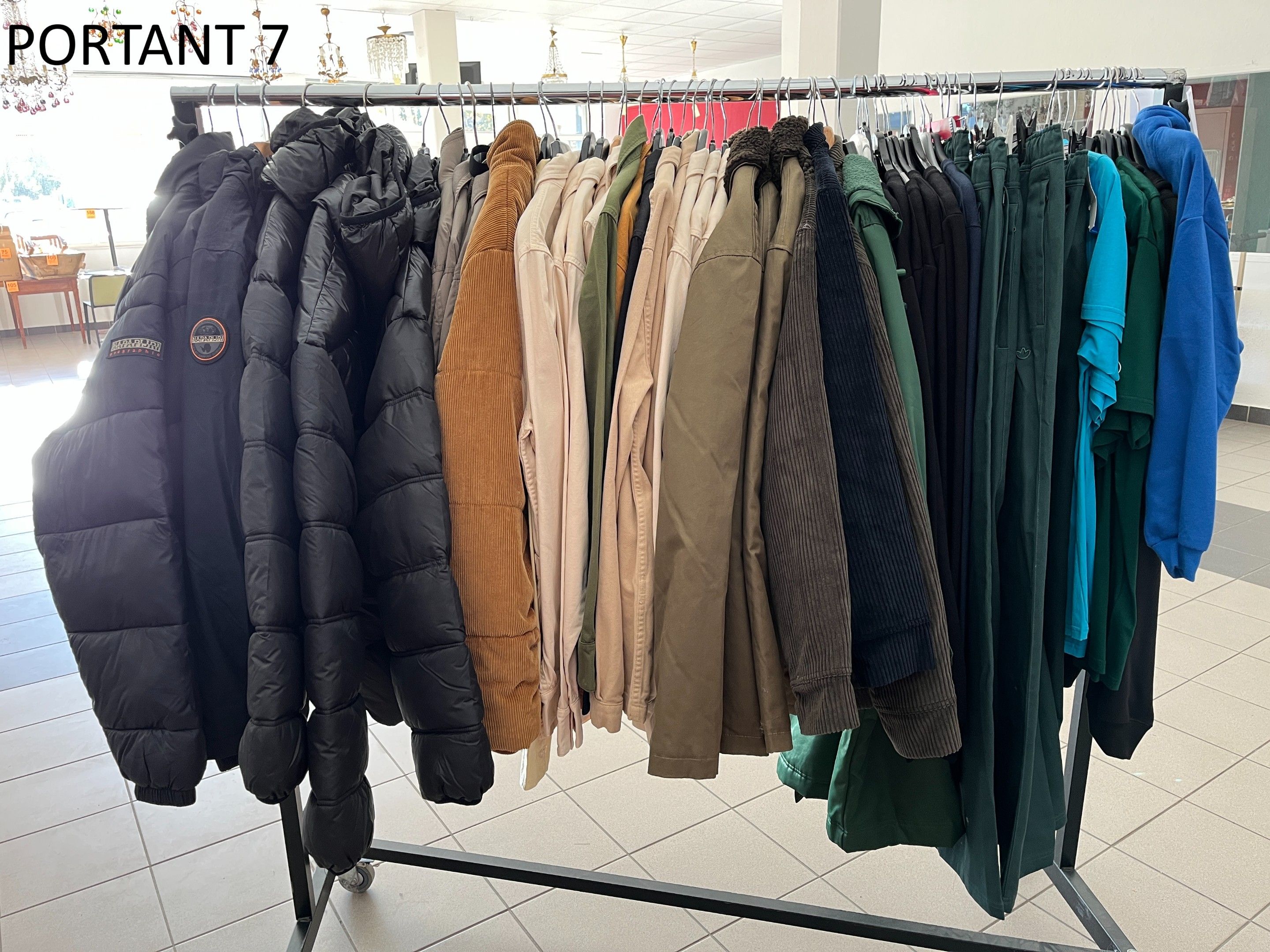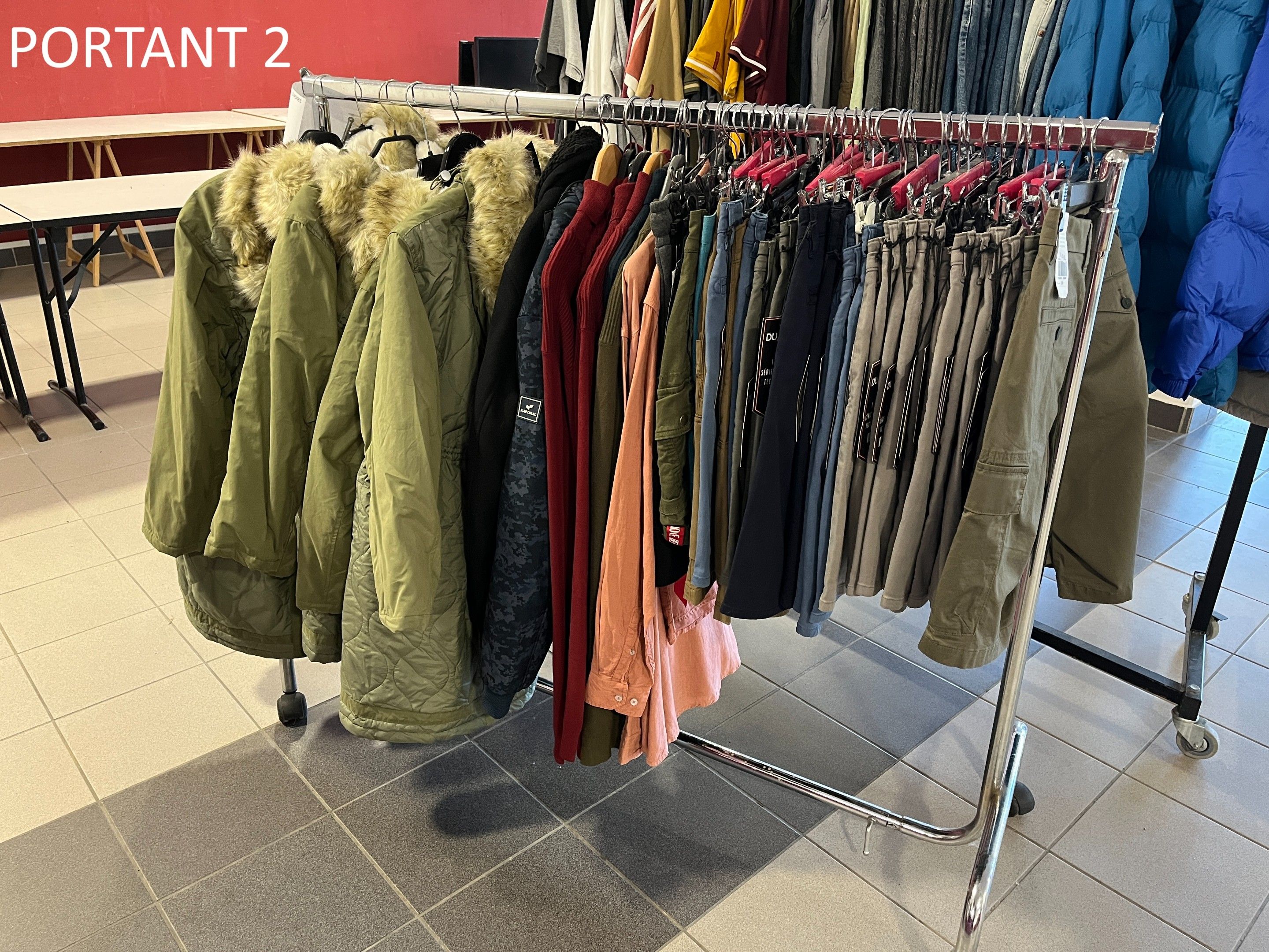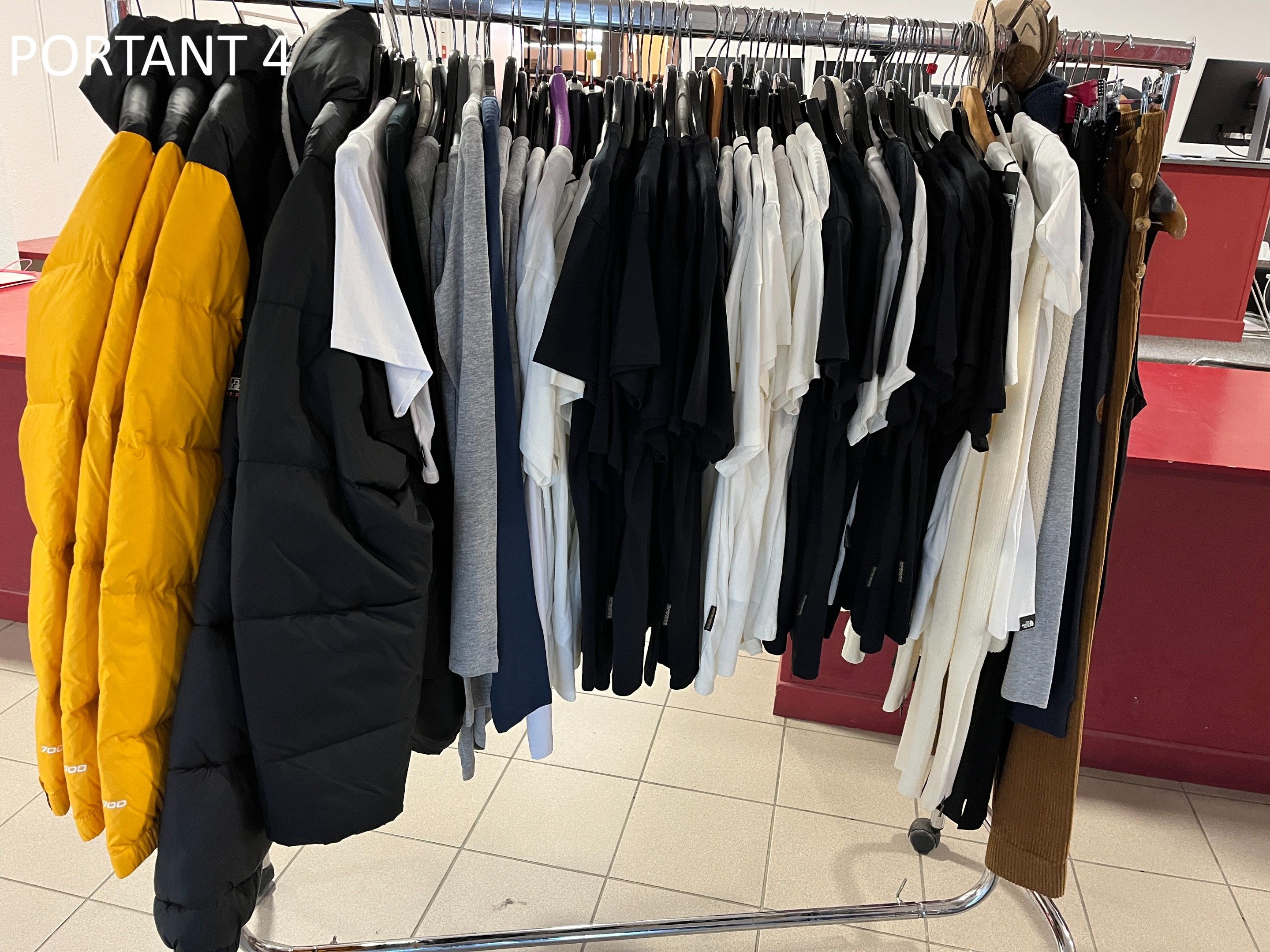 Important lot de vêtements et d'accessoires de marques diverses Après LJ DJN - Portant 1 : CERRUTTI / KAPORAL / LEVIS / JACK & JONES / ADIDAS / TOGS CHEVIGNON / 19V69 ITALIA / NAPAPIJRI / THE NORTHFACE Portant 2 : KAPORAL / ALPHA INDUSTRIES / GUESS / WEST / DUER / DOCKERS Portant 3 : KAPORAL / AMUSE SOCIETY / MAISON 123 / GUESS / PEPE JEANS Portant 4 : THE NORTHFACE / TOMMY HILFIGER / VANS / PEPE JEANS / NAPAPIJRI / KAPORAL / ROXY / LEVIS / JENNYFER / RAGWEAR / RICHERPOORER Portant 5 : KAPORAL / BILLABONG / THE NORTHFACE / PARAGOOSE Portant 6 : NAPAPIJRI / CAMAIEU / BILL TORNADE / JENNYFER / VOLKOM / VANS / GUESS Portant 7 : NAPAPIJRI / KAPORAL / RVCA / GANT / BASK IN THE SUN / JACK & JONES / ADIDAS / UNDIZ / JOTT Portant 8 : KAPORAL / JOTT / BASK IN THE SUN / THE NORTHFACE / KYTONE / VANS / BEN SHERMAN / LES FROUZES / UNITED BY BLUE / LACOSTE Portant 9 : DAKINE / LEVIS / KAPORAL / NIKE / WRANGLER / FUSALP / PEPE JEANS / AMUSE SOCIETY Portant 10 : TOMMY HILFIGER / AMUSE SOCIETY / PEPE JEANS / WRANGLER / KAPORAL / JOTT / THE NORTHFACE / UNDIZ / NAPAPIJRI Portant 11 : KAPORAL / JENNYFER / RVCA / CAMAIEU Portant 12 : CAMAIEU / JENNYER Voir photographie qui représente la totalité du lot (sans les chariots). Cartons comprenant : des sacs de marque GUESS et JANSPORT, des polos LACOSTE emballés, des polaires (marques variées), des joggings PEPE JEANS, des vestes BASK IN THE SUN, des claquettes PORCSHE, des écharpes EDEN PARK, des doudounes de marques variées (déjà portées), des sacs cabaïa, des vêtements JENNYFER, des chaussettes TOMMY HILFIGER, des chemises KAPORAL, des sacs CYRILLUS. 3 montres : 2 EMPORIO ARMANI, 1 ARMANI EXCHANGE. 13 paires de chaussures REEBOK / 6 paires ELLESSE / 3 paires PUMA / 4 paires ETNIES / 1 paire VANS. - Frais 14,28% (+1,2% si achat en live sur interenchères.com) - TVA récupérable - ENLEVEMENT IMPERATIF DE L'HOTEL DES VENTES SOUS 7 JOURS (Aucune expédition possible) - VENTE JUDICIAIRE SANS GARANTIE