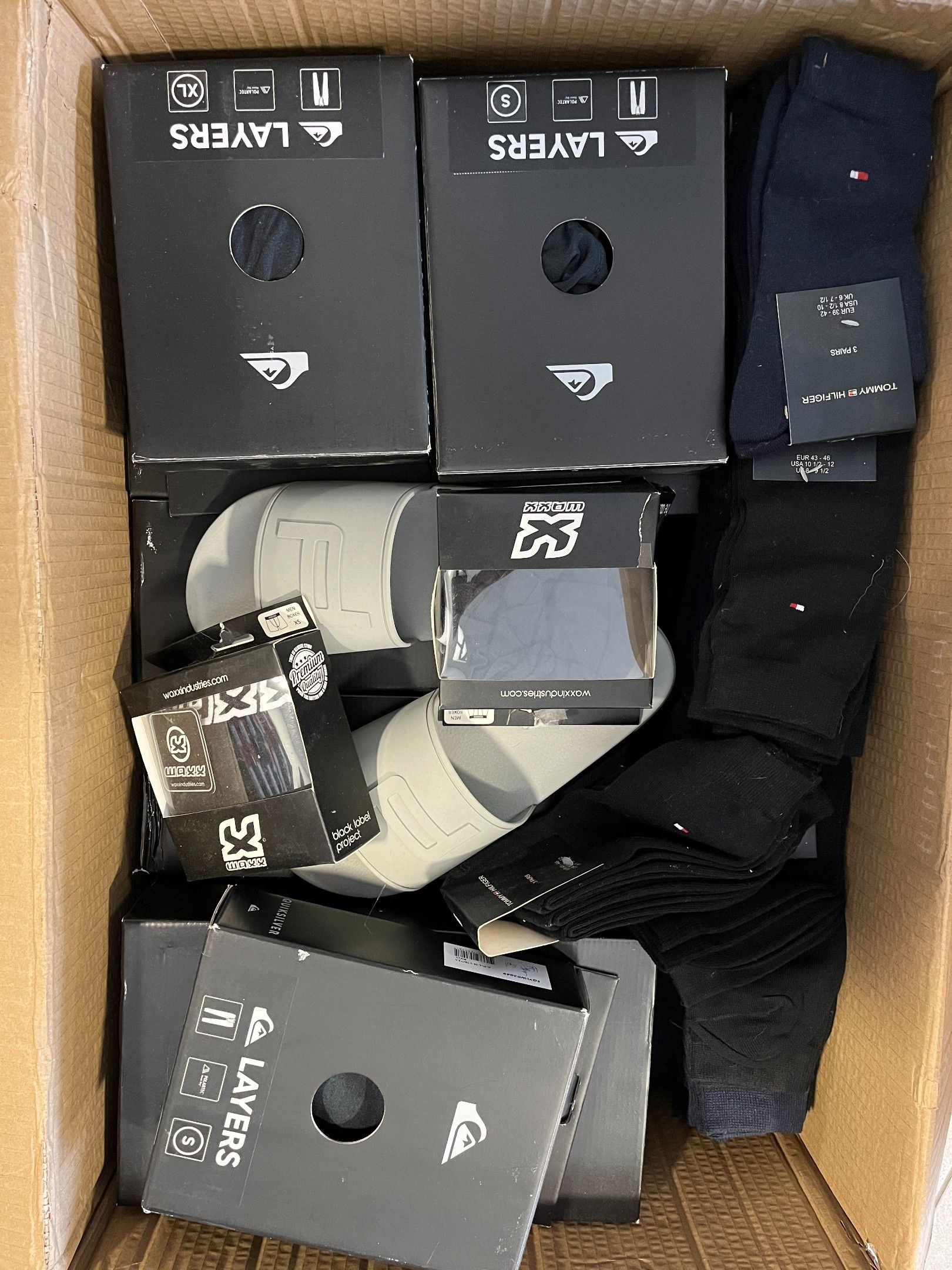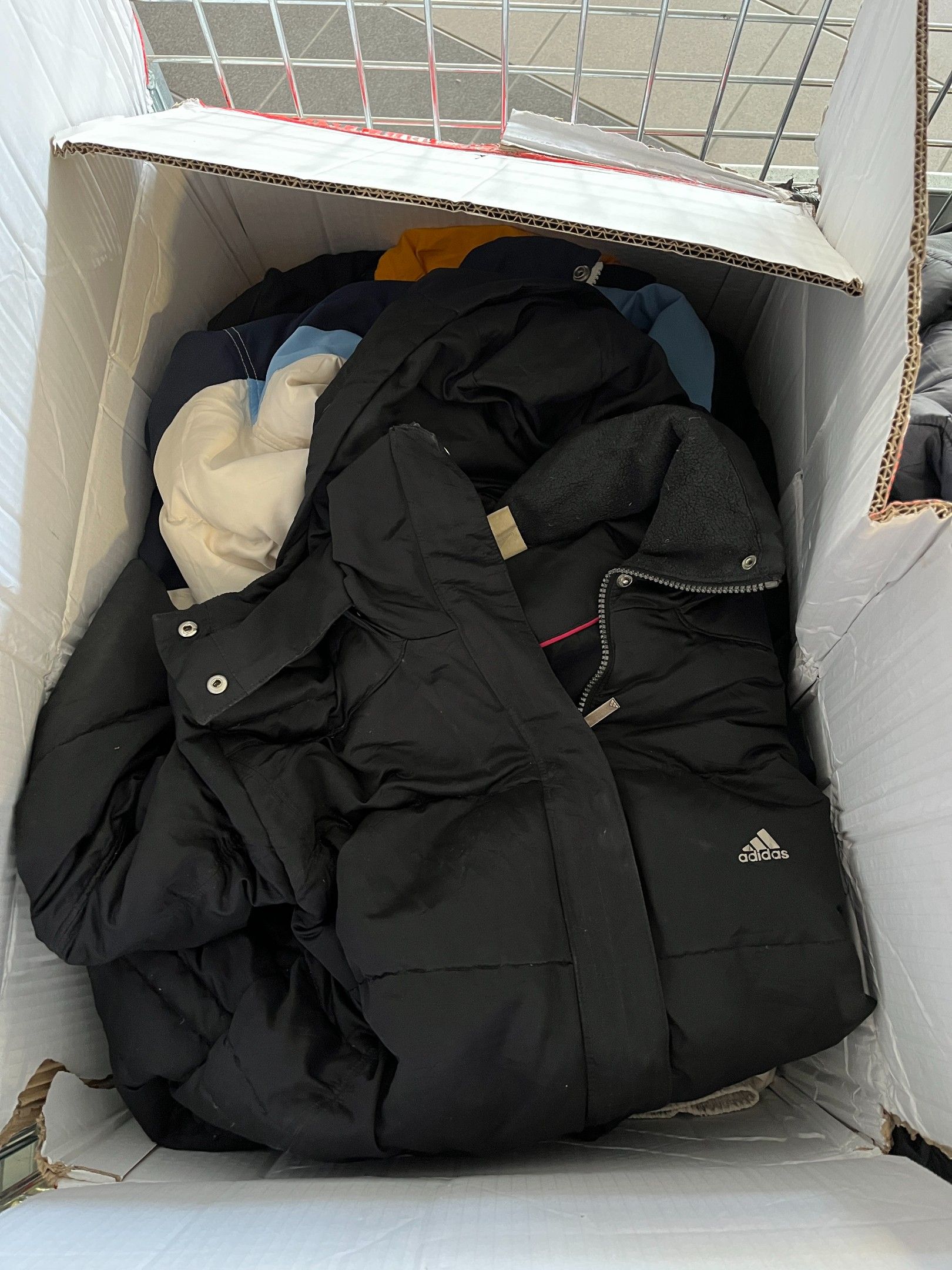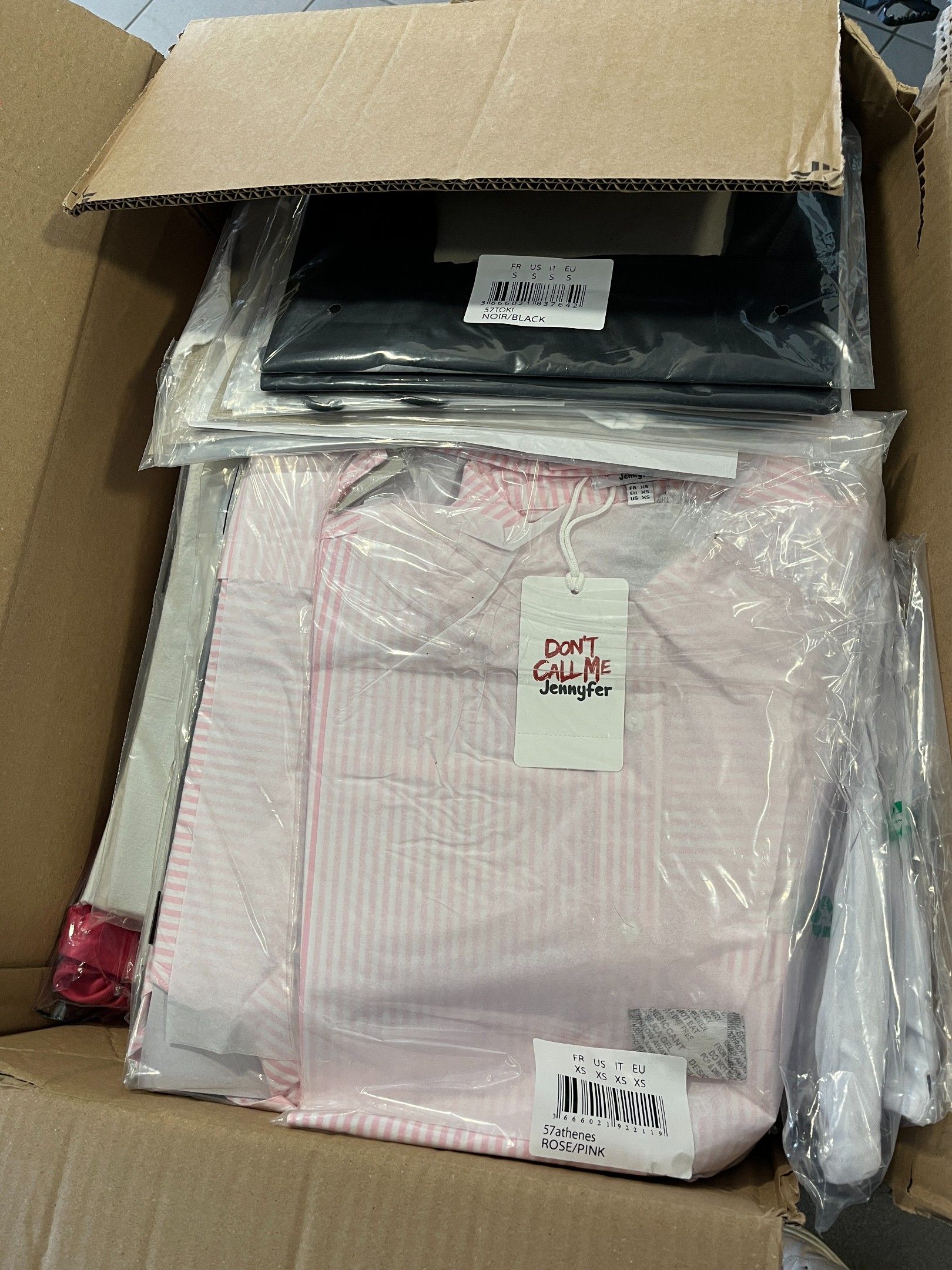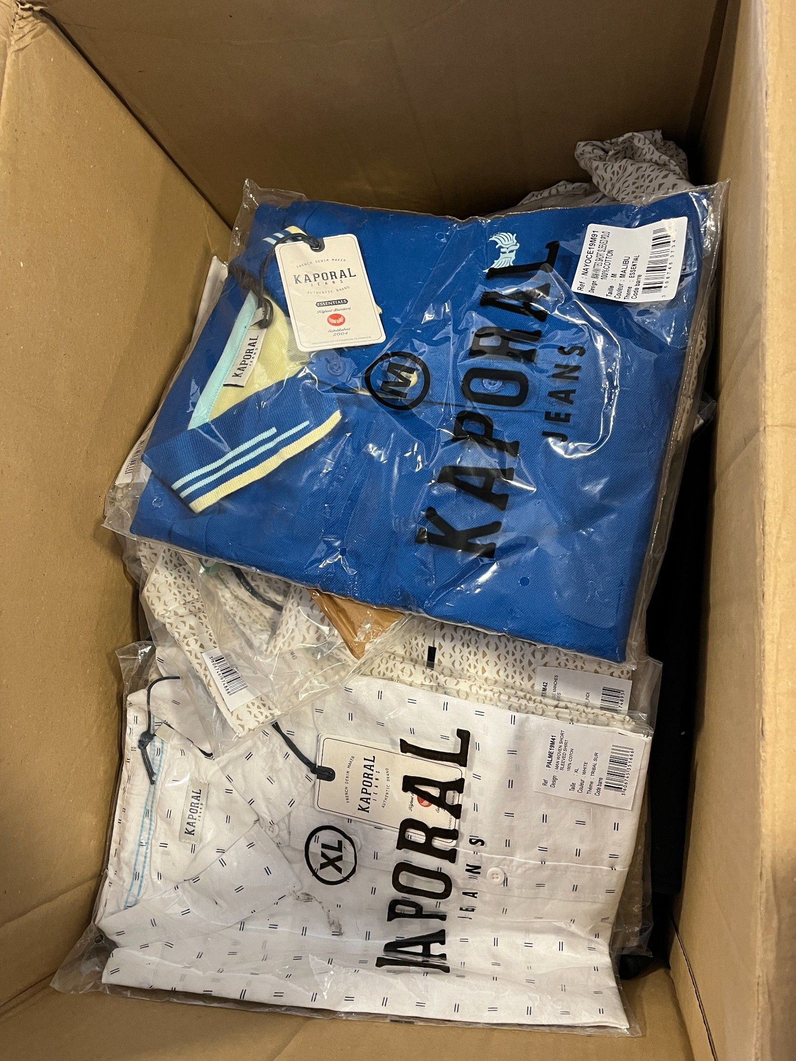 Important lot de vêtements et d'accessoires de marques diverses Après LJ DJN - Portant 1 : CERRUTTI / KAPORAL / LEVIS / JACK & JONES / ADIDAS / TOGS CHEVIGNON / 19V69 ITALIA / NAPAPIJRI / THE NORTHFACE Portant 2 : KAPORAL / ALPHA INDUSTRIES / GUESS / WEST / DUER / DOCKERS Portant 3 : KAPORAL / AMUSE SOCIETY / MAISON 123 / GUESS / PEPE JEANS Portant 4 : THE NORTHFACE / TOMMY HILFIGER / VANS / PEPE JEANS / NAPAPIJRI / KAPORAL / ROXY / LEVIS / JENNYFER / RAGWEAR / RICHERPOORER Portant 5 : KAPORAL / BILLABONG / THE NORTHFACE / PARAGOOSE Portant 6 : NAPAPIJRI / CAMAIEU / BILL TORNADE / JENNYFER / VOLKOM / VANS / GUESS Portant 7 : NAPAPIJRI / KAPORAL / RVCA / GANT / BASK IN THE SUN / JACK & JONES / ADIDAS / UNDIZ / JOTT Portant 8 : KAPORAL / JOTT / BASK IN THE SUN / THE NORTHFACE / KYTONE / VANS / BEN SHERMAN / LES FROUZES / UNITED BY BLUE / LACOSTE Portant 9 : DAKINE / LEVIS / KAPORAL / NIKE / WRANGLER / FUSALP / PEPE JEANS / AMUSE SOCIETY Portant 10 : TOMMY HILFIGER / AMUSE SOCIETY / PEPE JEANS / WRANGLER / KAPORAL / JOTT / THE NORTHFACE / UNDIZ / NAPAPIJRI Portant 11 : KAPORAL / JENNYFER / RVCA / CAMAIEU Portant 12 : CAMAIEU / JENNYER Voir photographie qui représente la totalité du lot (sans les chariots). Cartons comprenant : des sacs de marque GUESS et JANSPORT, des polos LACOSTE emballés, des polaires (marques variées), des joggings PEPE JEANS, des vestes BASK IN THE SUN, des claquettes PORCSHE, des écharpes EDEN PARK, des doudounes de marques variées (déjà portées), des sacs cabaïa, des vêtements JENNYFER, des chaussettes TOMMY HILFIGER, des chemises KAPORAL, des sacs CYRILLUS. 3 montres : 2 EMPORIO ARMANI, 1 ARMANI EXCHANGE. 13 paires de chaussures REEBOK / 6 paires ELLESSE / 3 paires PUMA / 4 paires ETNIES / 1 paire VANS. - Frais 14,28% (+1,2% si achat en live sur interenchères.com) - TVA récupérable - ENLEVEMENT IMPERATIF DE L'HOTEL DES VENTES SOUS 7 JOURS (Aucune expédition possible) - VENTE JUDICIAIRE SANS GARANTIE