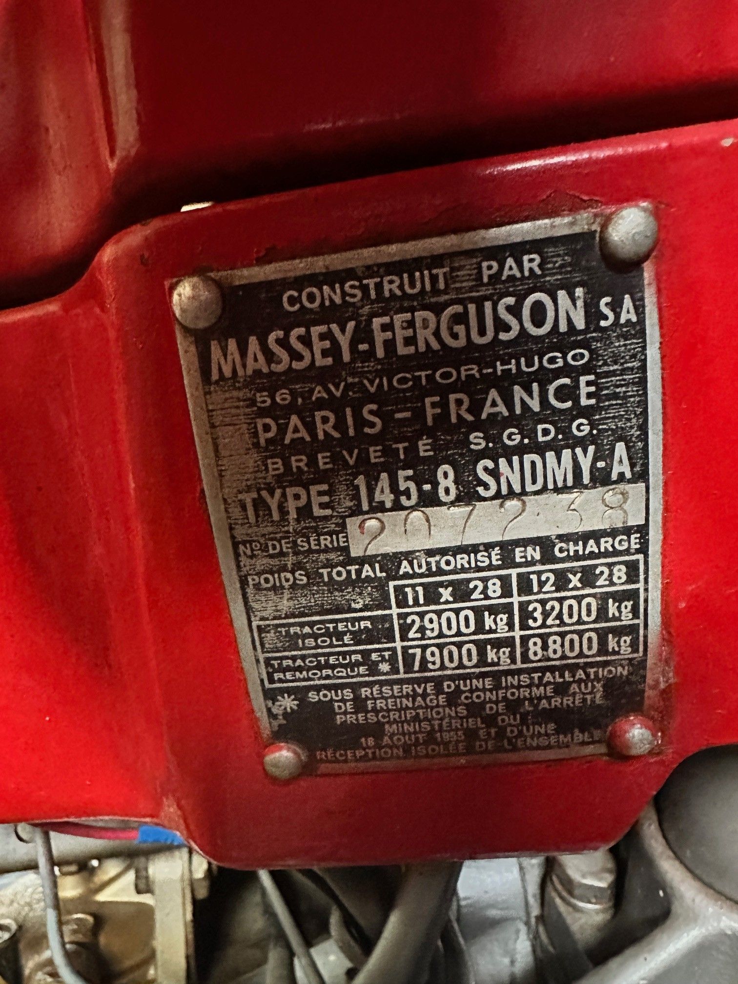 TRA MASSEY-FERGUSON Type 145-8 SNDMY-A N° série 207238 - carte grise HE-904-LZ ***vente suite à succession de Mr F. importante collection de tracteurs agricoles anciens - véhicules pour la plupart restaurés et fonctionnels du vivant du collectionneur - n'ont pas tourné au moins depuis 12 mois - vendus en l'état sans réclamation - révision - remise en route ou restauration pour certains sont à prévoir à charge des acquéreurs - vente sur désignation à retirer en Lozère proche Autoroute A 75 - enlèvement sur présentation de la facture le lundi 8 décembre à partir de 9H - frais 24% - réf 32807 ***