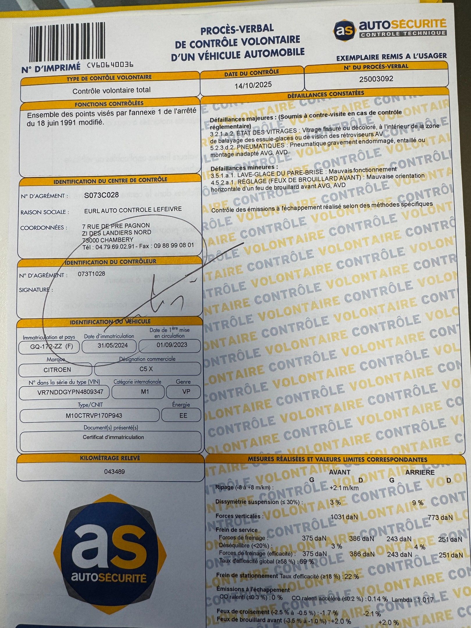VP CITROEN C5 X N°GQ-172-ZZ du 01/09/2023 - 10cv EE - 43 489…